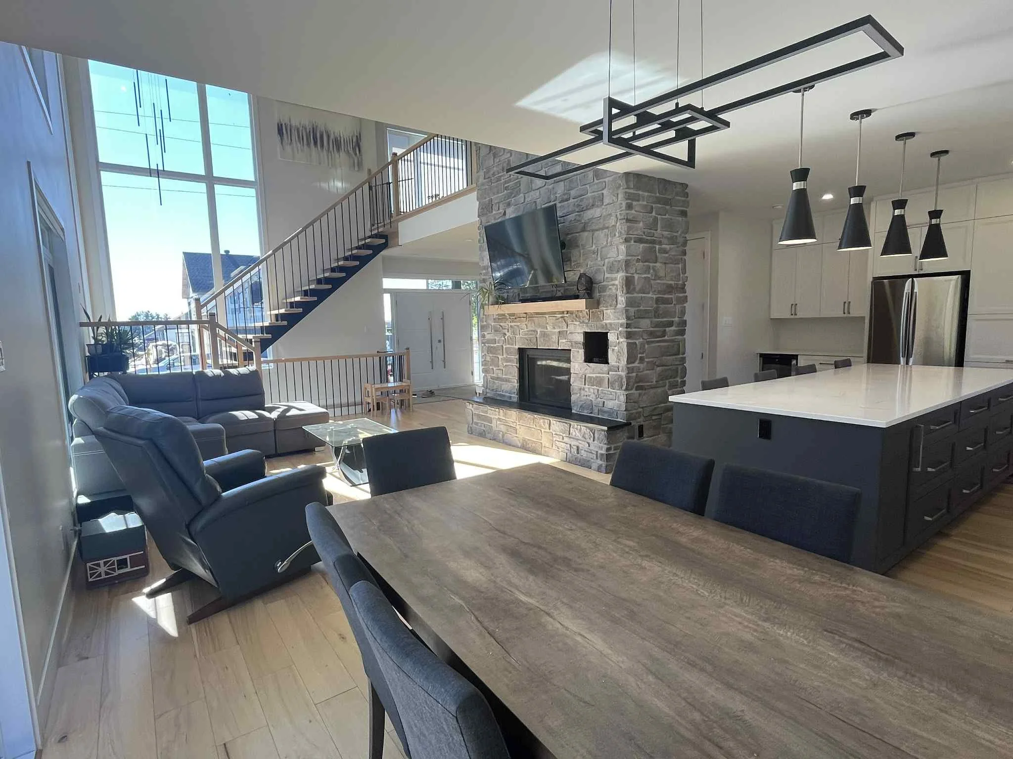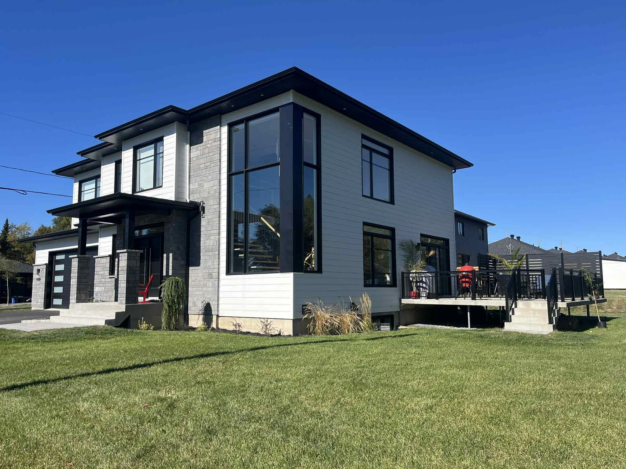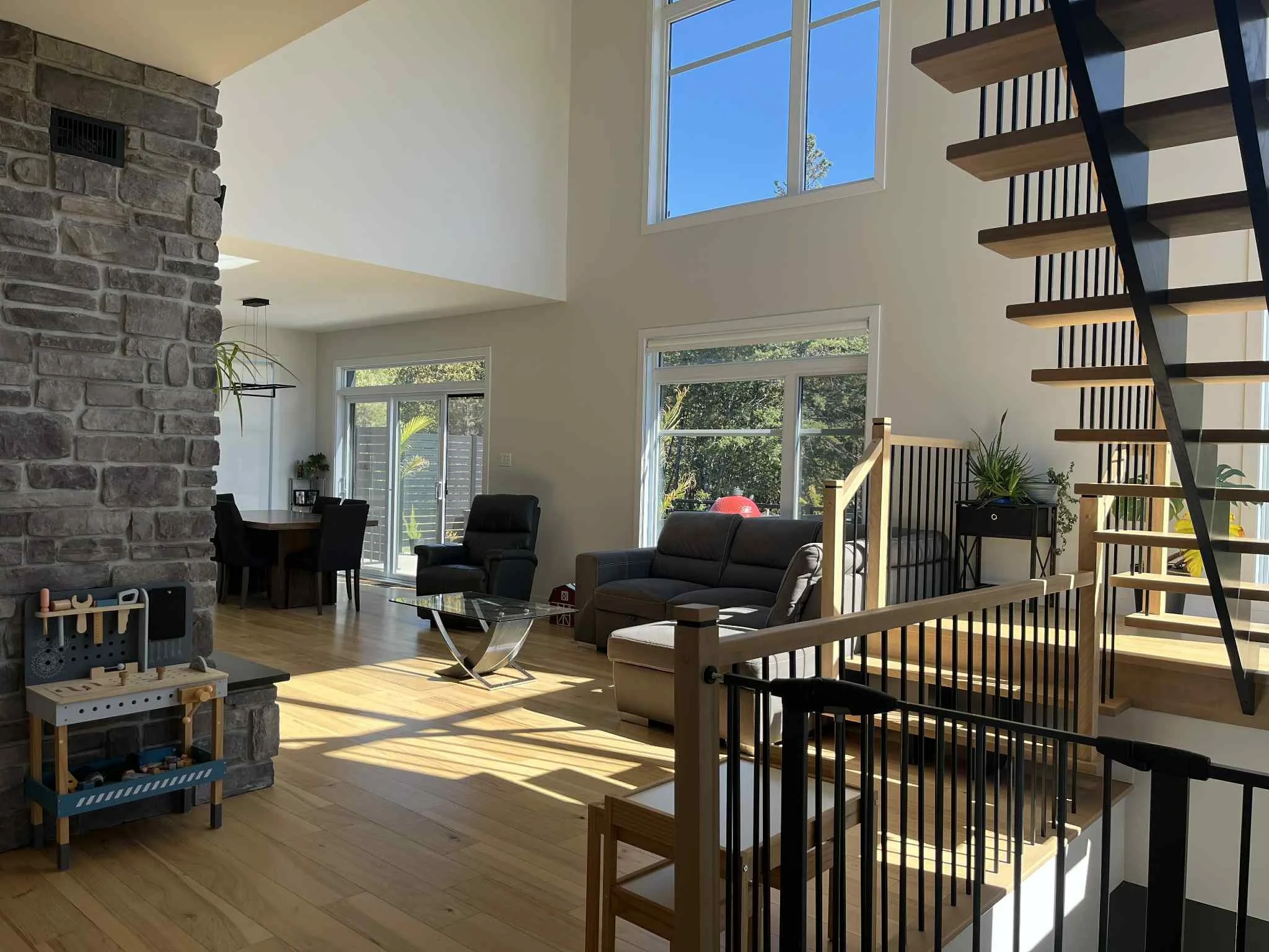 Suivant les tendances actuelles, ce projet, conçu par notre équipe, traversera les années sans aucun problème. La fenestration abondante et son plafond cathédrale donne une superbe luminosité et créer un effet spectaculaire.